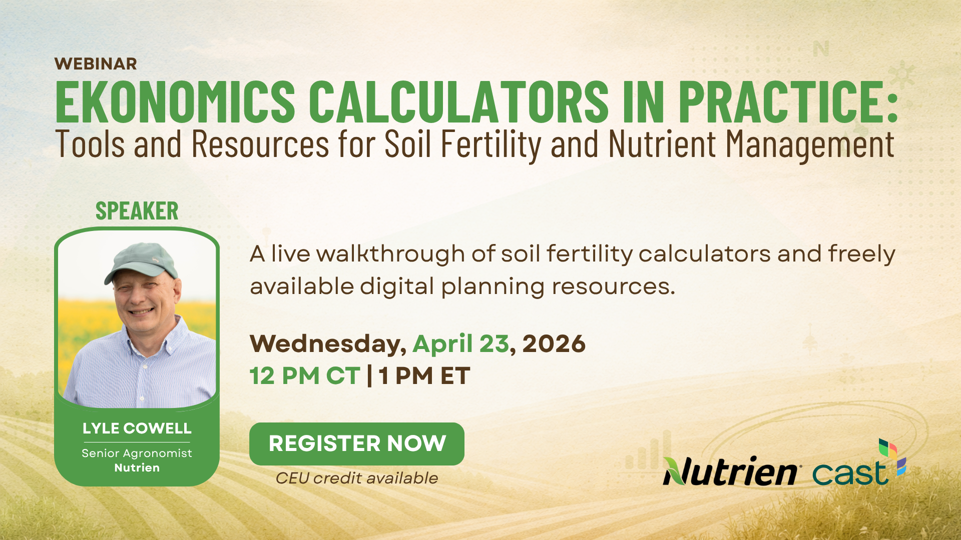 The session is designed for agronomists, crop consultants and farmers looking to strengthen their fertility planning process with science-based tools. Attendees will earn 1 Science Societies CEU credit for professional development.